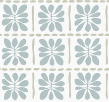 Abstracted flowers are framed by stitched lines, giving pattern Mimosa Fleur a quilted aesthetic with artistic flair. Featured here in a palette of light blue, sage, and white. This Mimosa Fleur Wallpaper measures approximately 27 inches wide by 27 feet long, measuring approximately 60.8 square feet per roll. Drawing inspiration from the gestural fluidity of turn of the century artwork, Artisan Studio offers an exploration of color, abstraction, and organic forms.