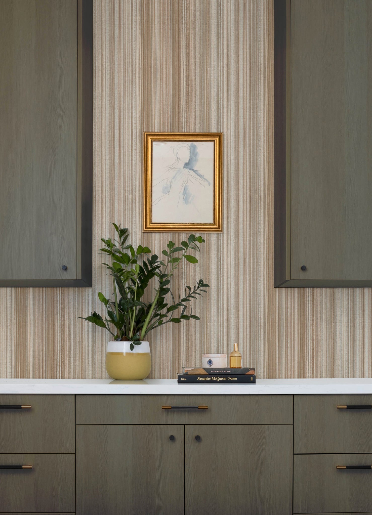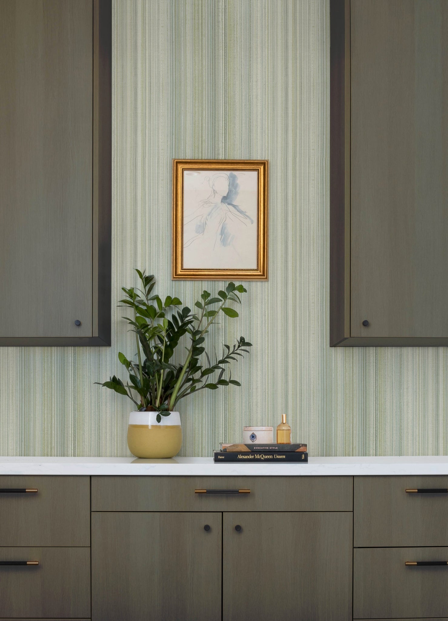 The varying color density of Elan’s pinstripes offers a modern take on ombre. Seen here in shades of pink, raspberry, taupe, and white. Elan is an unpasted, non woven wallpaper measuring 20.5 inches wide by 33 feet long, covering approximately About 56.4 square feet square feet per roll.