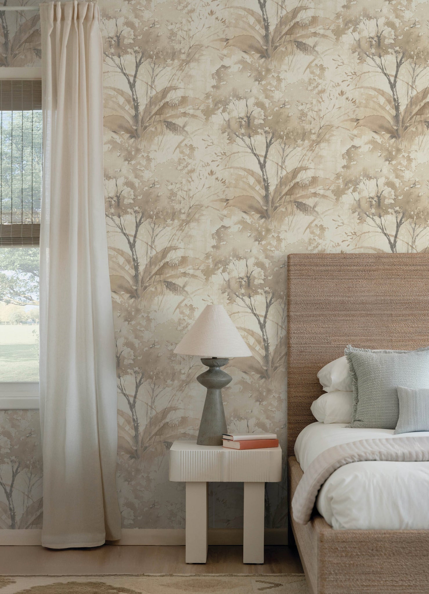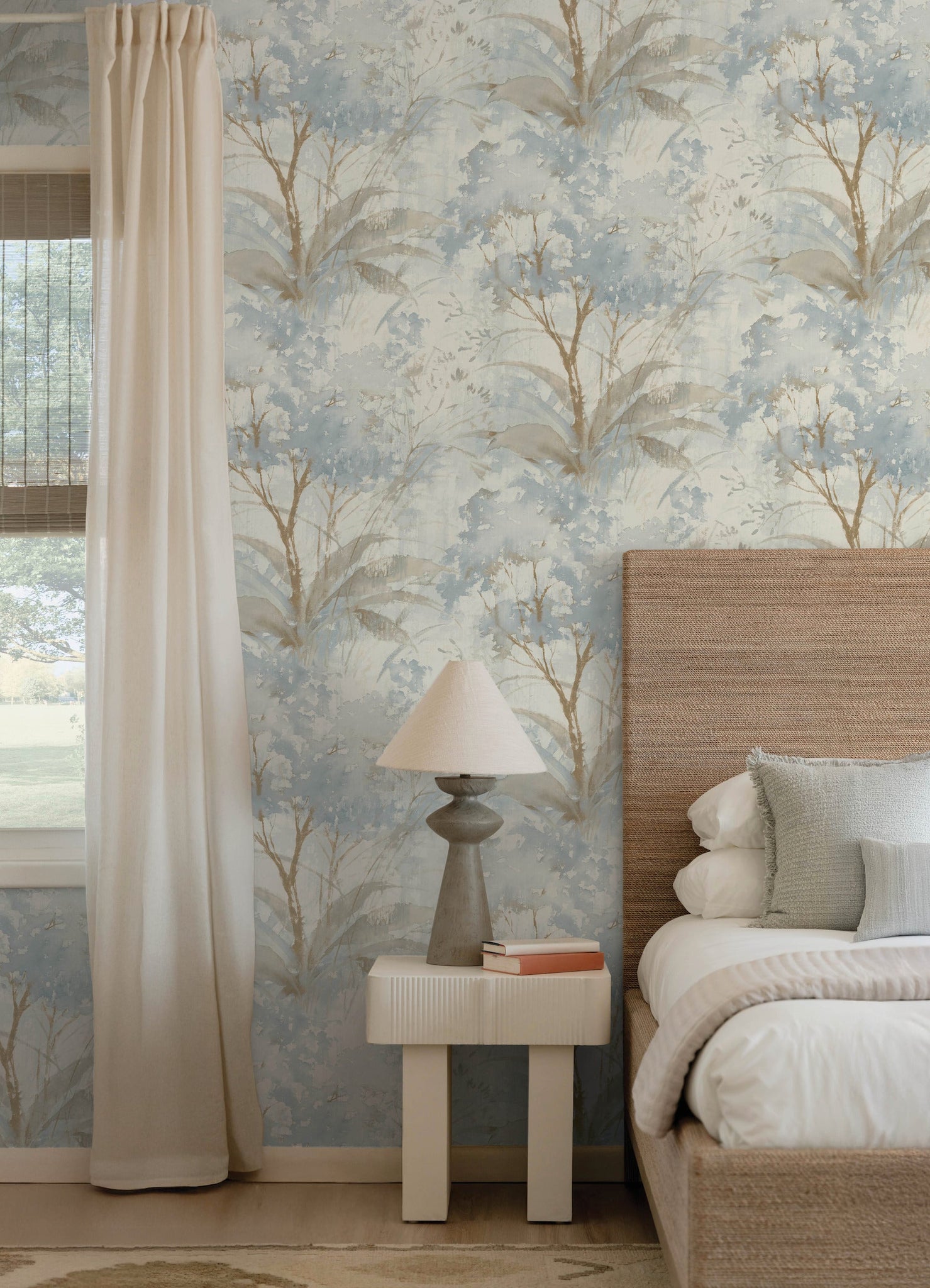 See the forest through the trees with Mistwood’s dreamy woodland design featuring layers of watercolor greenery. Featured here in shades of light blue, denim, and brown against white. Mistwood is an unpasted, non woven wallpaper measuring 20.5 inches wide by 33 feet long, covering approximately About 56.4 square feet square feet per roll.