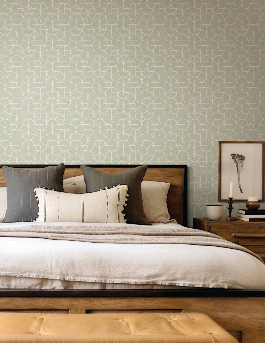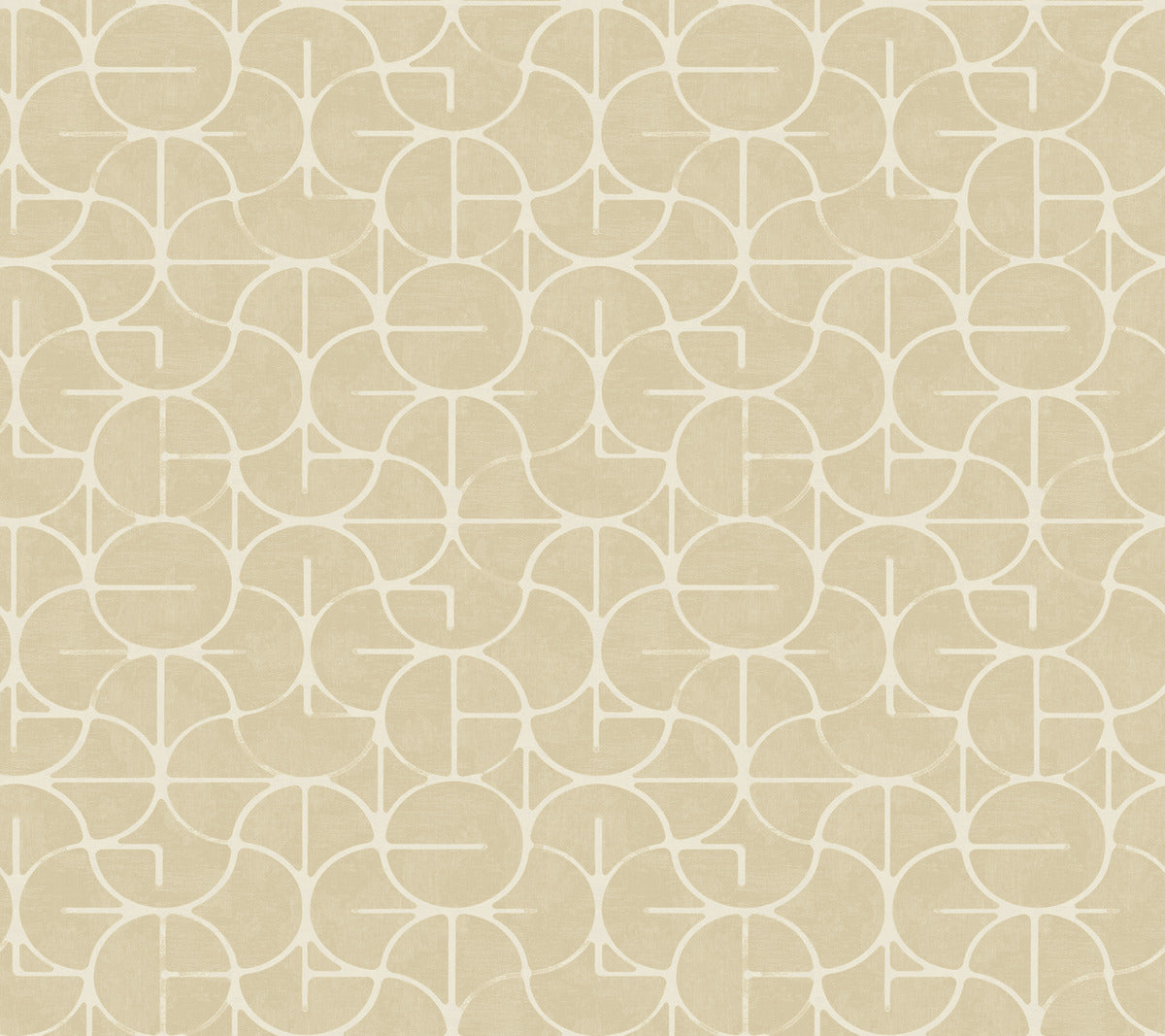 Design Looking Glass features a free-flowing ogee pattern embellished with hints of metallics and extra geometric details, the linework inked in cream brushed with subtle pearlescence against a golden taupe backdrop. This Looking Glass Wallpaper measures approximately 27 inches wide by 27 feet long, measuring approximately 60.8 square feet per roll. Textural, organic forms grounded in earthly inspiration.