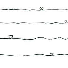 What better way to make sure a space has love written all over it! Lines of pink hearts and script reading "love" are strung across a white backdrop. Love & Hearts is an unpasted, non woven wallpaper.