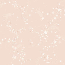 Stare up at the stars to your heart's content with this illustrative night sky wallpaper. The heavens seem to swirl and dance, with shoot stars streaking across the sparkling horizon. Pictured here in cool grey and white with subtle metallic accents. This Stjarnhimmel Wallpaper measures approximately 20.9 inches wide by 33 feet long, measuring approximately 57.5 square feet per roll. Embark on a journey bursting with child-like wonder with Lina Schnaufer's collection, Daydream. The trip around the world features explorations on hot air balloons, train rides through the mountains, trips to the circus, and other whimsical adventures.