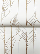 Feathery whisps and Art Deco curves embellish raised metallic stripes on a canvas of designer style in the stylized organic motif of Elemental Thread, featured in white with metallic gold. This Elemental Thread Wallpaper measures approximately 27 inches wide by 27 feet long, measuring approximately 60.8 square feet per roll. Candice Olson’s signature aesthetic defines timeless modern style. Decadence Second Edition features a gallery of glamorous specialty and luminous metallics dedicated to luxury living.