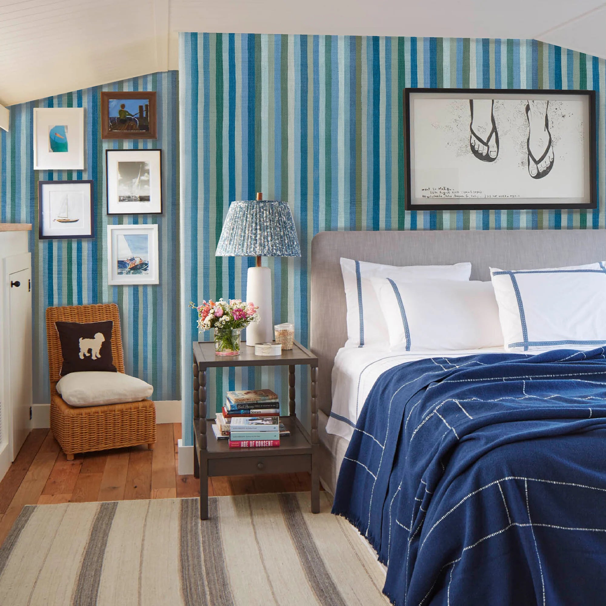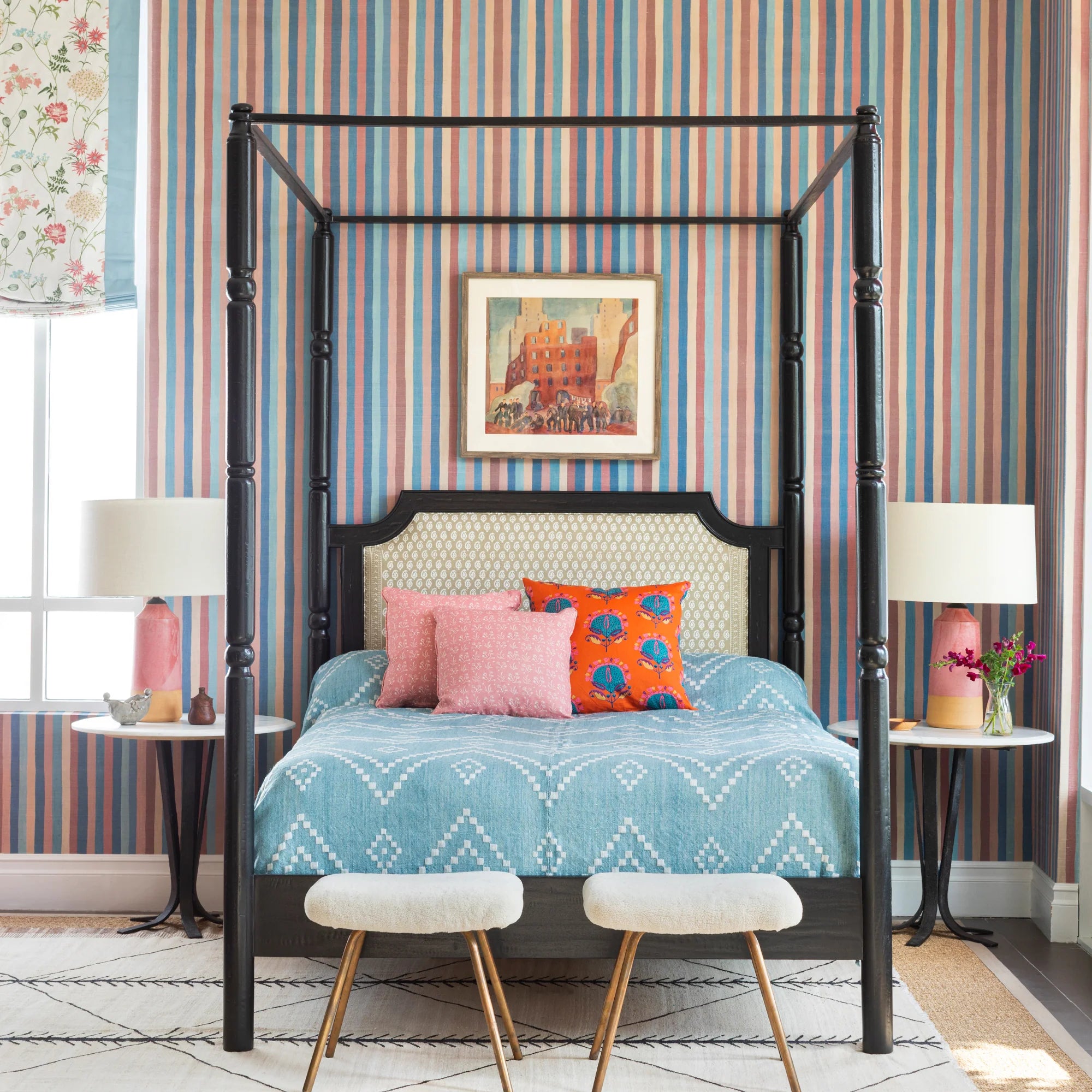 A chic, enveloping multicolor stripe to transform a space into something special.