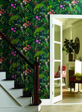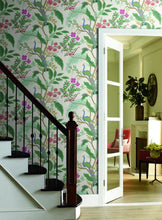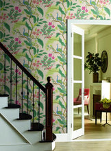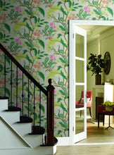 In this modern take on traditional chinoiserie motifs by Rifle Paper Co., magnificent peacocks perch on winding branches, surrounded by bright blooming flowers and emerald leaves.