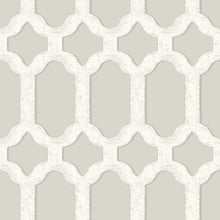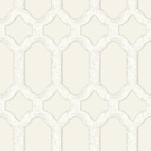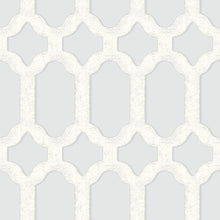 Inspired by antique fencing, this curving, quatrefoil trellis design features a pale grey and antique white finish imbued with weathered woodgrain detailing, softly offset against a cream background. Chervil is a prepasted, sure strip wallpaper measuring 20.5 inches wide by 33 feet long, covering approximately 56.4 square feet per roll.