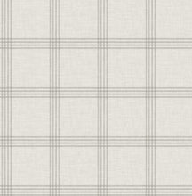 Classic plaid is given a sleek yet charming redesign with simple, grey pinstripe gridlines along a pale grey faux linen backdrop. Twain is an unpasted, non woven wallpaper measuring 20.5 inches wide by 33 feet long, covering approximately 56.4 square feet per roll.